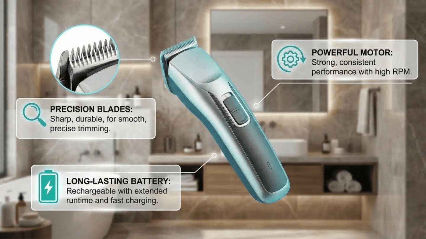 Discover the essential features of a high-quality electric hair trimmer in this comprehensive guide. This guide breaks down the “Big Three” of grooming performance: blade geometry, battery chemistry, and motor power. Whether you need a cordless hair trimmer for travel, an all in one trimmer for family use, or a professional-grade grooming trimmer for thick hair, learn how to choose the right tool for a smooth, irritation-free finish every time.