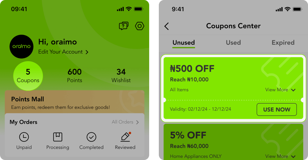 - Coupon details can be checked via 'Coupons' in your oraimo account.